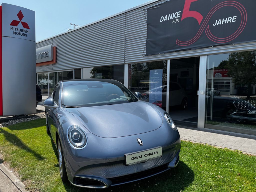 Weitere Ausstattung:11 Lautsprecher, Ambiente-Beleuchtung mehrfarbig, Außenspiegel elektr. verstell-, heiz- und anklappbar, Außenspiegel mit autom. Absenkfunktion, Dachhimmel schwarz, Einparkhilfe vorn und hinten, Elektromotor VA 150 kW / HA 150 kW, Fahrassistenz-System: 360-Grad-Rundumschutz (Surround-Kamerasystem), Fahrassistenz-System: Abbiege-Assistent (vorn), Fahrassistenz-System: Auffahrwarnsystem (Rear Collision Warning, RCW), Fahrassistenz-System: Ausstiegswarnung (Door Open Warning, DOW), Fahrassistenz-System: Ausweich-Assistent, Fahrassistenz-System: Autobahnassistent (HWA), Fahrassistenz-System: Fahrprofilauswahl (Fahrmodi), Fahrassistenz-System: Intelligente Beschleunigungskontrolle (Launch-Control), Fahrassistenz-System: Parkassistenzsystem (Park Assist), Fahrassistenz-System: Querverkehrs-Assistent Front mit Bremsfunktion (Front Cross Traffic Alert with Brake FCTA-B), Fahrassistenz-System: Querverkehrs-Assistent Heck mit Bremsfunktion (Rear Cross Traffic Alert with Brake, RCTA-B), Fahrassistenz-System: Rückfahr-Assistent, Fahrassistenz-System: Spurverlassenswarnung (LDW), Fahrassistenz-System: Spurwechselassistent (LCA), Fahrassistenz-System: Stauassistent (TJA), Head-up-Display, Heckspoiler (elektrisch ausfahrbar), Heizungs-/Klimaanlage: Wärmepumpe, HV-Batterie 86 kWh, Induktionsladeschale für Smartphone, Infotainment-System: 12,3" Touchscreen mit Navigation, Innenspiegel mit Abblendautomatik, Instrumentenanzeige Farbdisplay, 10,25 Zoll, Karosserie: 4-türig, Klimaautomatik 2-Zonen, Ladekabel mit Typ 2-Stecker (Mode 2), Lenkrad (Kunstleder), LM-Felgen, Metallic-Lackierung Snow White, Motorsound-System, One Pedal Drive (elektronisches Gaspedal), Panoramadach (Glas), Rücksitzlehne geteilt/klappbar (40:20:40), Scheibenwaschdüsen heizbar, Sitz vorn links elektr. verstellbar (6-fach), Sitz vorn links und Außenspiegel mit Memoryfunktion, Sitz vorn rechts elektr. verstellbar (4-fach), Sitzbelüftung vorn, Sitze vorn mit Massagefunktion, Sitzheizung vorn, Smartphone-Integration (Apple CarPlay und Android Auto), Sound-System Infinity, Sprachassistent Hello Ora, Türgriffe außen ausfahrbar / versenkbar, elektrisch, Unfalldaten-Speicher (Black-Box), USB-Schnittstelle, Verglasung hinten abgedunkelt (Privacy Glass), Vorbereitung für Alkohol-Wegfahrsperre- FahrzeugkategorieSportwagen/Coupé