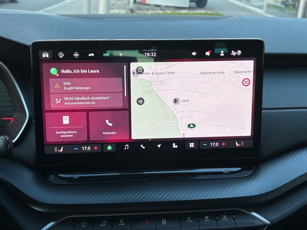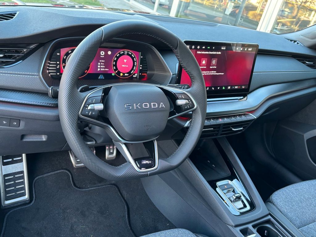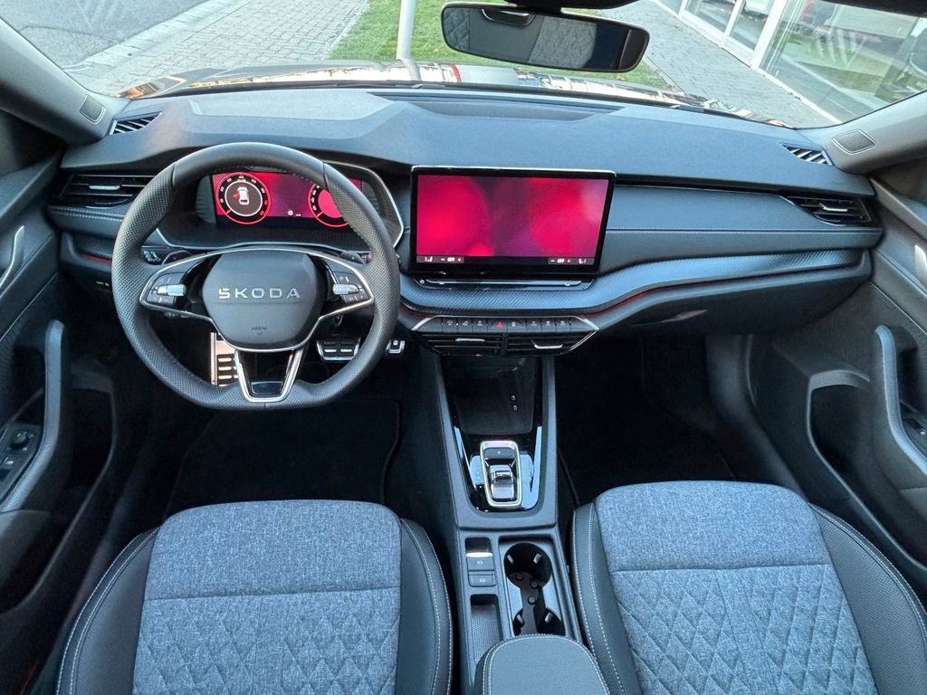 - Weitere Ausstattung:2 USB-Anschlüsse vorn und 2 USB-Ladeanschlüsse im Fond und USB-Ladeanschluß am Rückspiegel, 3-Punkt-Sicherheitsgurte hinten, 8 Lautsprecher, Ablagefächer (Gepäck-/Laderaum), Ablagetasche an Vordersitzlehnen, Airbag Beifahrerseite abschaltbar, Airbag Fahrer-/Beifahrerseite, Akustikglas Türscheiben vorn, Antriebs-Schlupfregelung (ASR), Außenspiegel elektr. anklappbar, Außenspiegel elektr. verstell- und heizbar, Außenspiegel mit Abblendautomatik, links, Außenspiegel schwarz lackiert und Türgriffe außen in Wagenfarbe, Brillenfach, Dachhimmel schwarz, Dachreling schwarz, hochglänzend, Doppeltonfanfare, Edelstahlpedale Sportdesign, Einparkhilfe vorn und hinten, Einstiegsleisten (Aluminium-Design), Elektron. Querdifferentialsperre (XDS), Fahrassistenz-Paket: Travel Assist, Fahrassistenz-System: Abbiegebremsfunktion und Ausweichunterstützung, Fahrassistenz-System: Auffahrwarnsystem mit City-Notbremsfunktion (Frontradar-Assistent), Fahrassistenz-System: Berganfahr-Assistent (Hill-Holder), Fahrassistenz-System: Fahrprofilauswahl, Fahrassistenz-System: Fernlichtassistent, Fahrassistenz-System: Intelligente Geschwindigkeitsanpassung (ISA) inkl. Speed-Limiter, Fahrassistenz-System: Kreuzungs-Assistent (Crossroad Assist), Fahrassistenz-System: Multikollisionsbremse (Multi Collision Brake), Fahrassistenz-System: Müdigkeitserkennung, Fahrassistenz-System: Verkehrszeichenerkennung, Fensterheber elektrisch vorn + hinten, Fensterzierleisten schwarz, hochglänzend, Freisprechanlage Telefon mit Bluetooth, Frontkamera, Fußraumbeleuchtung vorn und hinten, Gepäckraumabdeckung / Rollo, Heckleuchten LED (Kristallglas-Optik), Heckscheibenwischer, Induktionsladeschale für Smartphone, Infotainment-System mit 10" Display, Innenausstattung: Dekoreinlagen Dark Carbon, Innenausstattung: Luftausströmer Schwarz, Innenspiegel mit Abblendautomatik, Isofix-Aufnahmen für Kindersitz an Beifahrersitz und Rücksitze außen (inkl. Top Tether), Karosserie: 5-türig, Kindersicherung, manuell, Klimaanlage Climatronic 2-Zonen, Knieairbag Fahrerseite, Kofferraumbeleuchtung, Kombiinstrument digital (virtual cockpit plus), Kopf-Airbag-System, Kühlergrill schwarz, Lehnenentriegelung der Rücksitzlehne im Kofferraum, Lenkrad (Sport/Leder - 3-Speichen, unten abgeflacht) mit Multifunktion und Schaltfunktion, Lenksäule (Lenkrad) verstellbar (vertikal / axial), Leseleuchten vorn und hinten, Leuchtweitenregelung, LM-Felgen, Modellpflege, Motor 1,5 Ltr. - 110 kW 16V TSI mHEV Mild-Hybrid (DXDB), Motor-Schleppmoment-Regulator (MSR), Parkbremse elektronisch, Progressivlenkung, Radioempfang digital (DAB+), Reifen-Reparaturkit, Reifendruck-Kontrollsystem, Rückfahrkamera, Rücksitz geteilt / klappbar (60:40) Mittelarmlehne und Durchladefunktion, Rücksitzlehne geteilt/klappbar, Schadstoffarm nach Abgasnorm Euro 6e, Scheinwerfer LED, Seitenairbag vorn mitte (Center-Airbag), Servolenkung elektronisch (Servotronic), Sitzbezug / Polsterung: Stoff/Kunstleder Sportline schwarz, Sitzheizung vorn, SKODA Care Connect & Infotainment Online, Sonnenblenden mit Spiegel (LED-Beleuchtung), Sport-Fahrwerk, Sportsitze, Steckdose (12V-Anschluß) im Koffer-/Laderaum, Stoßfängerblende und Heckdiffusor schwarz glänzend, Türen mit Warnleuchte, Türgriffe innen verchromt, Verzurrösen Koffer-/Laderaum, Vorbereitung für Alkohol-Wegfahrsperre (Alcolock), Warnanlage für Sicherheitsgurte hinten, Warnanlage für Sicherheitsgurte, Fahrer-/Beifahrerseite, Wireless SmartLink, Zentralverriegelung / Startanlage Kessy-Go: