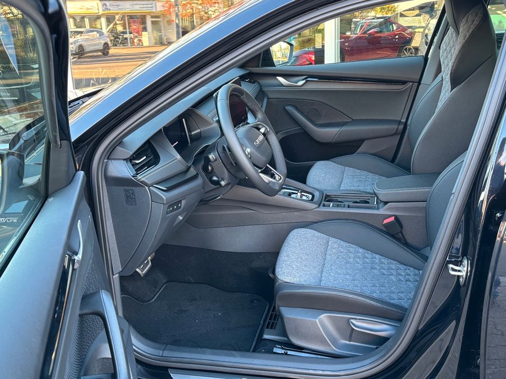 Sonderausstattung:Anhängerkupplung mit elektr. Entriegelung, schwenkbar, inkl. Anhängerstabilisierung mit Trailer Assist & Adapter, Fahrassistenz-System: Spurwechselassistent inkl. Auspark-Assistent und Ausstiegswarnung, Perleffekt-Lackierung- Weitere Ausstattung:2 USB-Anschlüsse vorn und 2 USB-Ladeanschlüsse im Fond und USB-Ladeanschluß am Rückspiegel, 3-Punkt-Sicherheitsgurte hinten, 8 Lautsprecher, Ablagefächer (Gepäck-/Laderaum), Ablagetasche an Vordersitzlehnen, Airbag Beifahrerseite abschaltbar, Airbag Fahrer-/Beifahrerseite, Akustikglas Türscheiben vorn, Antriebs-Schlupfregelung (ASR), Außenspiegel elektr. anklappbar, Außenspiegel elektr. verstell- und heizbar, Außenspiegel mit Abblendautomatik, links, Außenspiegel schwarz lackiert und Türgriffe außen in Wagenfarbe, Brillenfach, Dachhimmel schwarz, Dachreling schwarz, hochglänzend, Doppeltonfanfare, Edelstahlpedale Sportdesign, Einparkhilfe vorn und hinten, Einstiegsleisten (Aluminium-Design), Elektron. Querdifferentialsperre (XDS), Fahrassistenz-Paket: Travel Assist, Fahrassistenz-System: Abbiegebremsfunktion und Ausweichunterstützung, Fahrassistenz-System: Auffahrwarnsystem mit City-Notbremsfunktion (Frontradar-Assistent), Fahrassistenz-System: Berganfahr-Assistent (Hill-Holder), Fahrassistenz-System: Fahrprofilauswahl, Fahrassistenz-System: Fernlichtassistent, Fahrassistenz-System: Intelligente Geschwindigkeitsanpassung (ISA) inkl. Speed-Limiter, Fahrassistenz-System: Kreuzungs-Assistent (Crossroad Assist), Fahrassistenz-System: Multikollisionsbremse (Multi Collision Brake), Fahrassistenz-System: Müdigkeitserkennung, Fahrassistenz-System: Verkehrszeichenerkennung, Fensterheber elektrisch vorn + hinten, Fensterzierleisten schwarz, hochglänzend, Freisprechanlage Telefon mit Bluetooth, Frontkamera, Fußraumbeleuchtung vorn und hinten, Gepäckraumabdeckung / Rollo, Heckleuchten LED (Kristallglas-Optik), Heckscheibenwischer, Induktionsladeschale für Smartphone, Infotainment-System mit 10" Display, Innenausstattung: Dekoreinlagen Dark Carbon, Innenausstattung: Luftausströmer Schwarz, Innenspiegel mit Abblendautomatik, Isofix-Aufnahmen für Kindersitz an Beifahrersitz und Rücksitze außen (inkl. Top Tether), Karosserie: 5-türig, Kindersicherung, manuell, Klimaanlage Climatronic 2-Zonen, Knieairbag Fahrerseite, Kofferraumbeleuchtung, Kombiinstrument digital (virtual cockpit plus), Kopf-Airbag-System, Kühlergrill schwarz, Lehnenentriegelung der Rücksitzlehne im Kofferraum, Lenkrad (Sport/Leder - 3-Speichen, unten abgeflacht) mit Multifunktion und Schaltfunktion, Lenksäule (Lenkrad) verstellbar (vertikal / axial), Leseleuchten vorn und hinten, Leuchtweitenregelung, LM-Felgen, Modellpflege, Motor 1,5 Ltr. - 110 kW 16V TSI mHEV Mild-Hybrid (DXDB), Motor-Schleppmoment-Regulator (MSR), Parkbremse elektronisch, Progressivlenkung, Radioempfang digital (DAB+), Reifen-Reparaturkit, Reifendruck-Kontrollsystem, Rückfahrkamera, Rücksitz geteilt / klappbar (60:40) Mittelarmlehne und Durchladefunktion, Rücksitzlehne geteilt/klappbar, Schadstoffarm nach Abgasnorm Euro 6e, Scheinwerfer LED, Seitenairbag vorn mitte (Center-Airbag), Servolenkung elektronisch (Servotronic), Sitzbezug / Polsterung: Stoff/Kunstleder Sportline schwarz, Sitzheizung vorn, SKODA Care Connect & Infotainment Online, Sonnenblenden mit Spiegel (LED-Beleuchtung), Sport-Fahrwerk, Sportsitze, Steckdose (12V-Anschluß) im Koffer-/Laderaum, Stoßfängerblende und Heckdiffusor schwarz glänzend, Türen mit Warnleuchte, Türgriffe innen verchromt, Verzurrösen Koffer-/Laderaum, Vorbereitung für Alkohol-Wegfahrsperre (Alcolock), Warnanlage für Sicherheitsgurte hinten, Warnanlage für Sicherheitsgurte, Fahrer-/Beifahrerseite, Wireless SmartLink, Zentralverriegelung / Startanlage Kessy-Go: